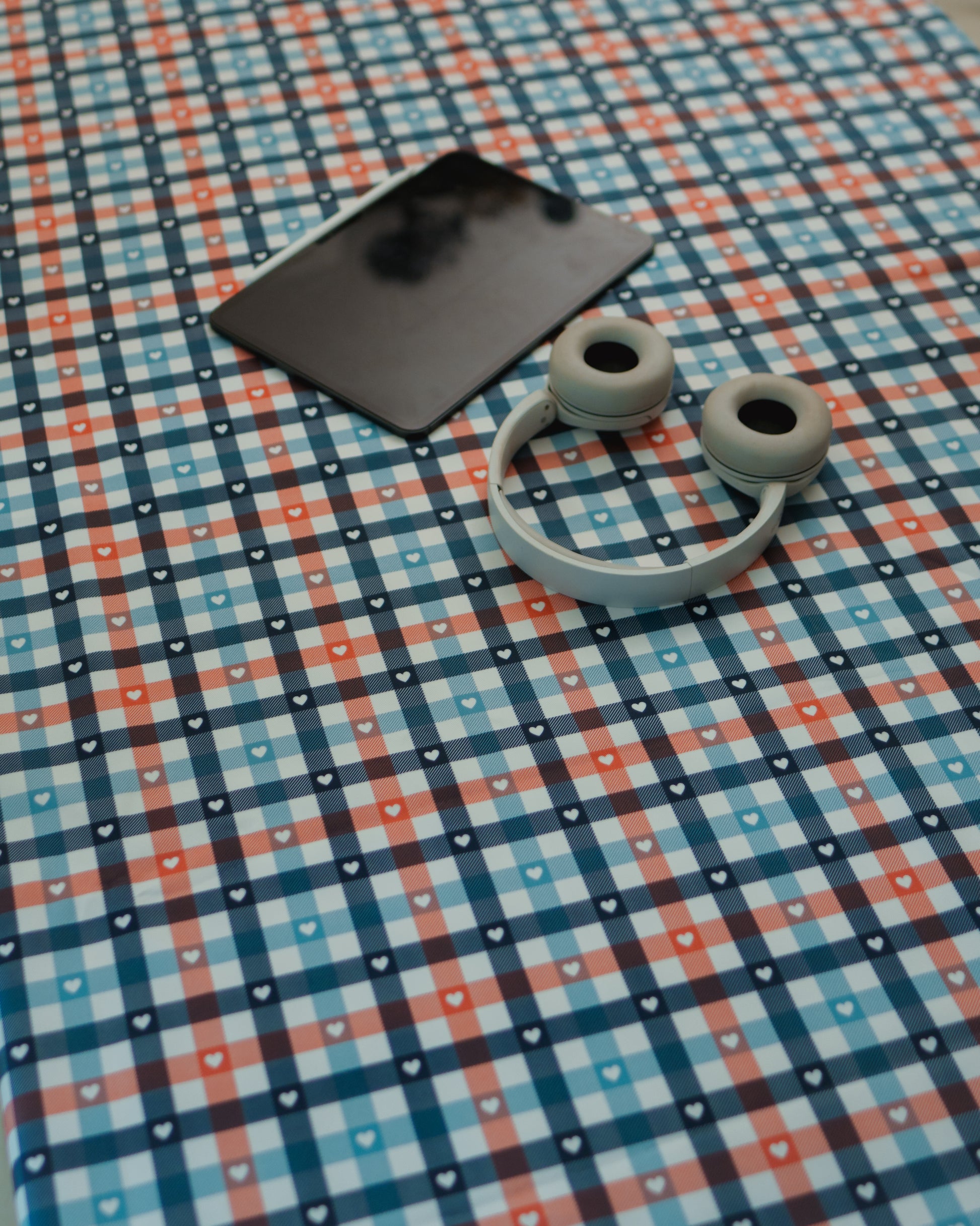 Checks Table Cloth - Gingham - Navy Blue Hearts