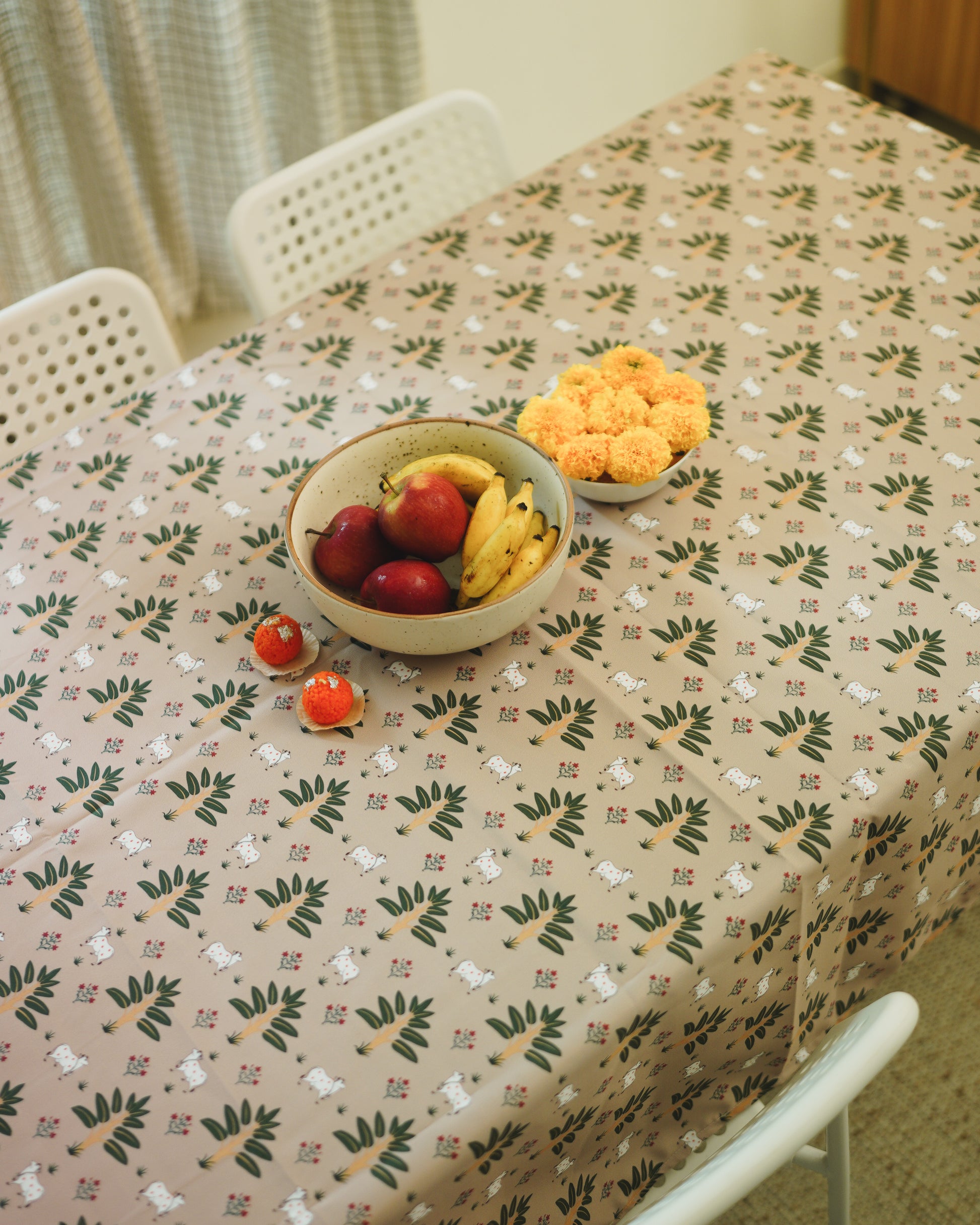 Pichwai Table Cloth - Palm - Beige
